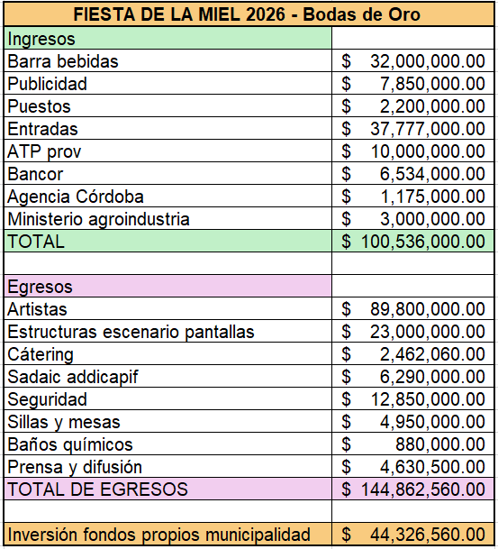 La Municipalidad de San Marcos Sierras pone a disposición de la comunidad el balance económico completo correspondiente a la Fiesta Nacional de la Miel 2026, en el marco de nuestro compromiso con la transparencia y la rendición pública de cuentas.